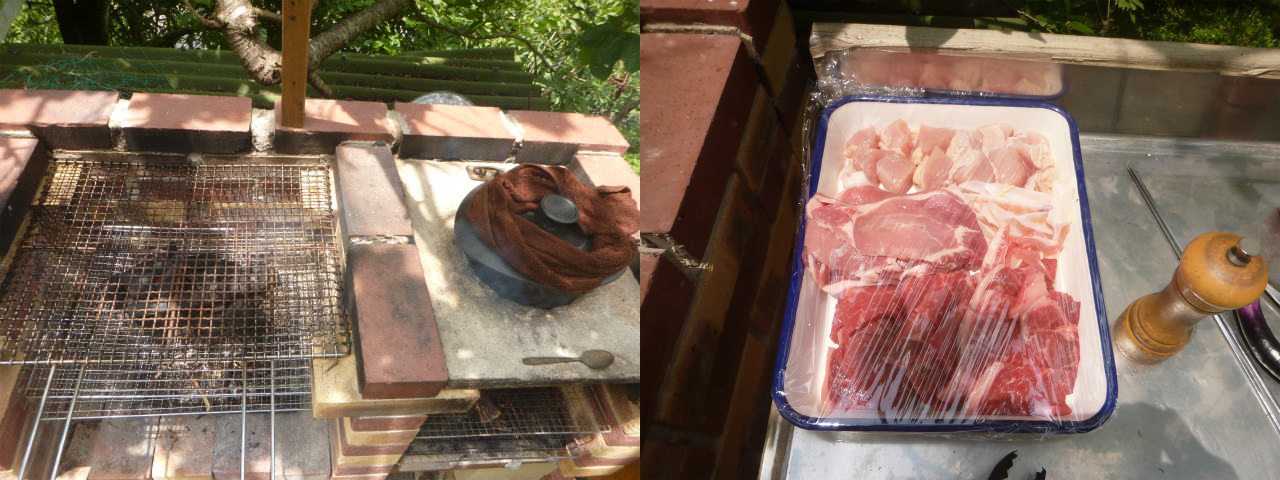 娘さんと息子はんがいない間に、少量の牛肉を1種類だけ購入し、ワイフと小さい人だけで焼き肉をした。お釜で飯を炊き、その辺の野菜を適当に焼いて食べた。7月2日(土)