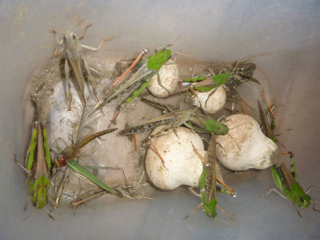 そう言えば、最近、無双してないな?と言う事で、息子はんと幼稚園の帰りに土手に行ってトノサマバッタ狩りを行った。網を一つ任せてみたら、意外なほど戦力になり、そんな所に子供の成長を発見した。捕まえたトノサマバッタは、卵を産み始めたばかりの新人さん達の滋養となった。