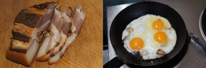 毎日食べても全く飽きないくらい目玉焼きが好きなのだが、特にベーコン&エッグスが大好物。早速、ベーコンの脂で、卵を焼いた。【Ex】