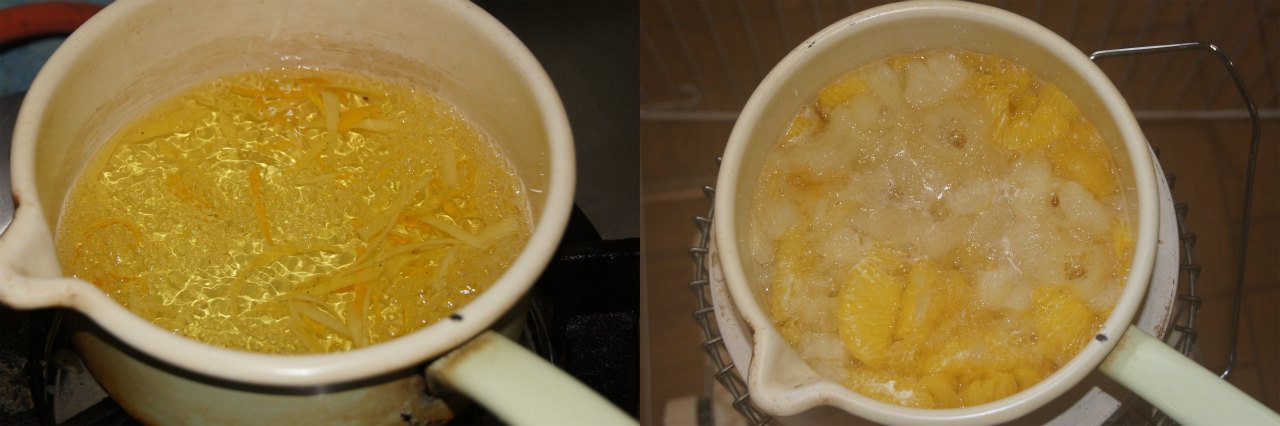 で、物凄い勢いでマーマレード風ジャムを消費したので、今度はグレープフルーツ果皮と果肉で、マーマレード風ジャムをこさえた。