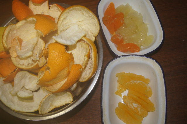 「ほとんど人間」と言う海外ドラマは、画面に食い入らずとも、ラジオのように聞いているだけでも理解しやすいので、これを付けながら柑橘類の皮を剥くのがこの冬の定番。外皮は風呂に入れたり、油源として堆肥に入れたりしている。