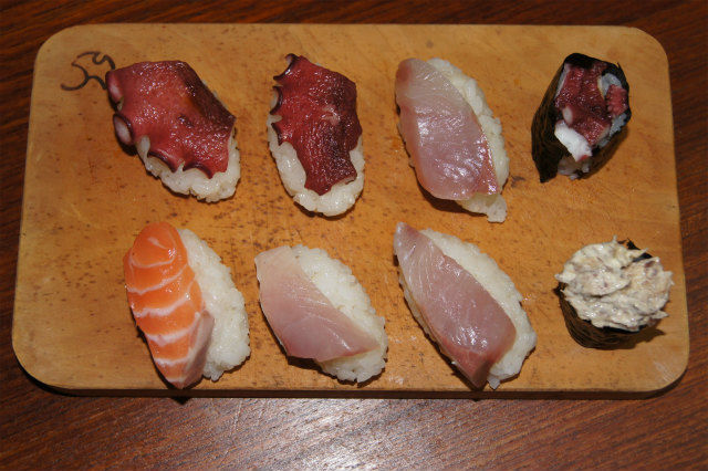 夕方、スーパーでその辺の魚が売られているのを見かけ、半分冗談で、家帰ってから酢飯作ってくれたら握るけど?と言ってみたら、ノリノリで作ってくれたので握ってみた。握りは大人が食べ、子供達はオイルサーディンとシャケ缶の軍艦巻き。
