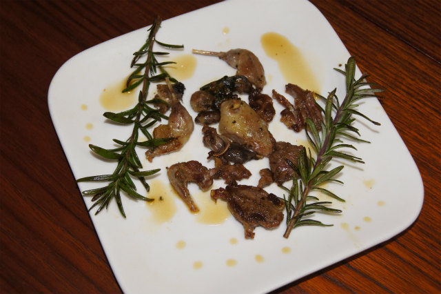 娘さんが捌いた野鳥を食べた。ニンニクやローズマリーで匂い消し。