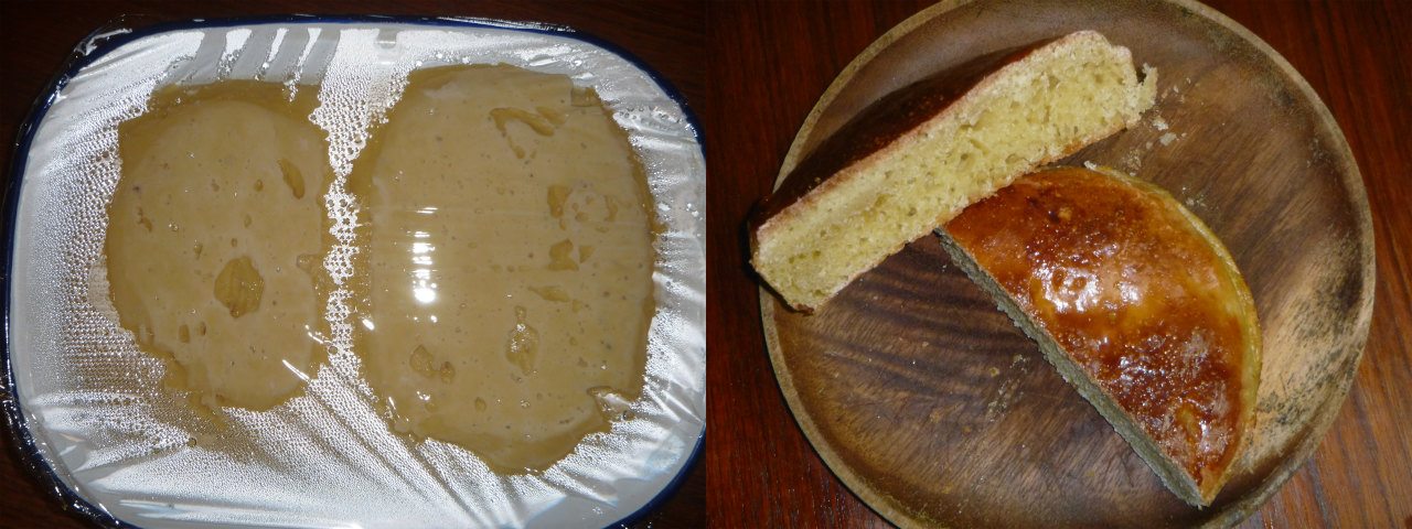 作り方は横着。ボウルの中でコネるだけ。その後、外に出してアクリルケースに閉じ込め発酵させる。今回のは、あまりふっくら仕上がらなかった。