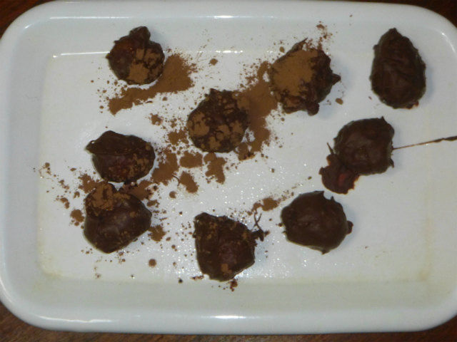 娘さんがバレンタインで使用したチョコが余っていたので、ちょうど木に成っていた種無し金柑の「ぷちまる」にコーティングしてみた。