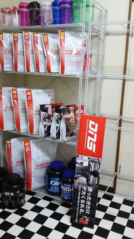 棚の間隔を決めるため、商品を仮置きしてみた。