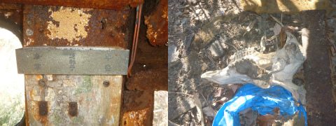 そろそろ帰ろうかと言う時に、車体の下を覗き込んだ男の子が叫んだ。「頭の骨や!」しまった!ルールその1、人骨を見つけたら無視して撤退!