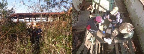 近所を散歩するときに通る溜池の対岸の雑木林の中に、何やら古びた構造物が見え隠れしているのが何年も前から気になっていた。娘さんが付き合いの良い時期に行くには、マムシとスズメバチがいない今しかないだろう。探検に参加するクラスメイトを前にPCを開き、ブリーフィングを行う。グーグルアースでルートを確認し、所要時間を予想。そして、ルールを決めた。死体や人骨を発見したら、とても面倒なので無視して帰る。大麻を発見したら、音を立てずに逃げる。というシンプルなもの。
