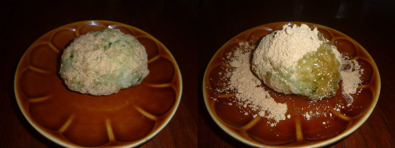 朝、町内のママ友から頂いた手作りのヨモギ大福を朝食にした。ひとつは普通に食べ、2個目はハチミツをドバドバかけてからきな粉をモッサリ乗せて頂いた。