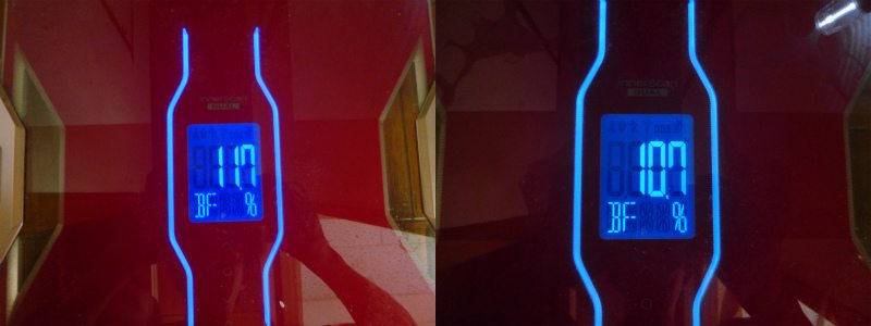 体脂肪率も10%台だったのが11%に戻り気味であったが、丁度1%減って、再び10%台に。2日目の夜には、顔や脇腹で簡単に判るくらい締まってきたが、この減った数字は主に内臓脂肪だと思われる。体組成計の内臓脂肪レベルが6.5→5.0になっていた。